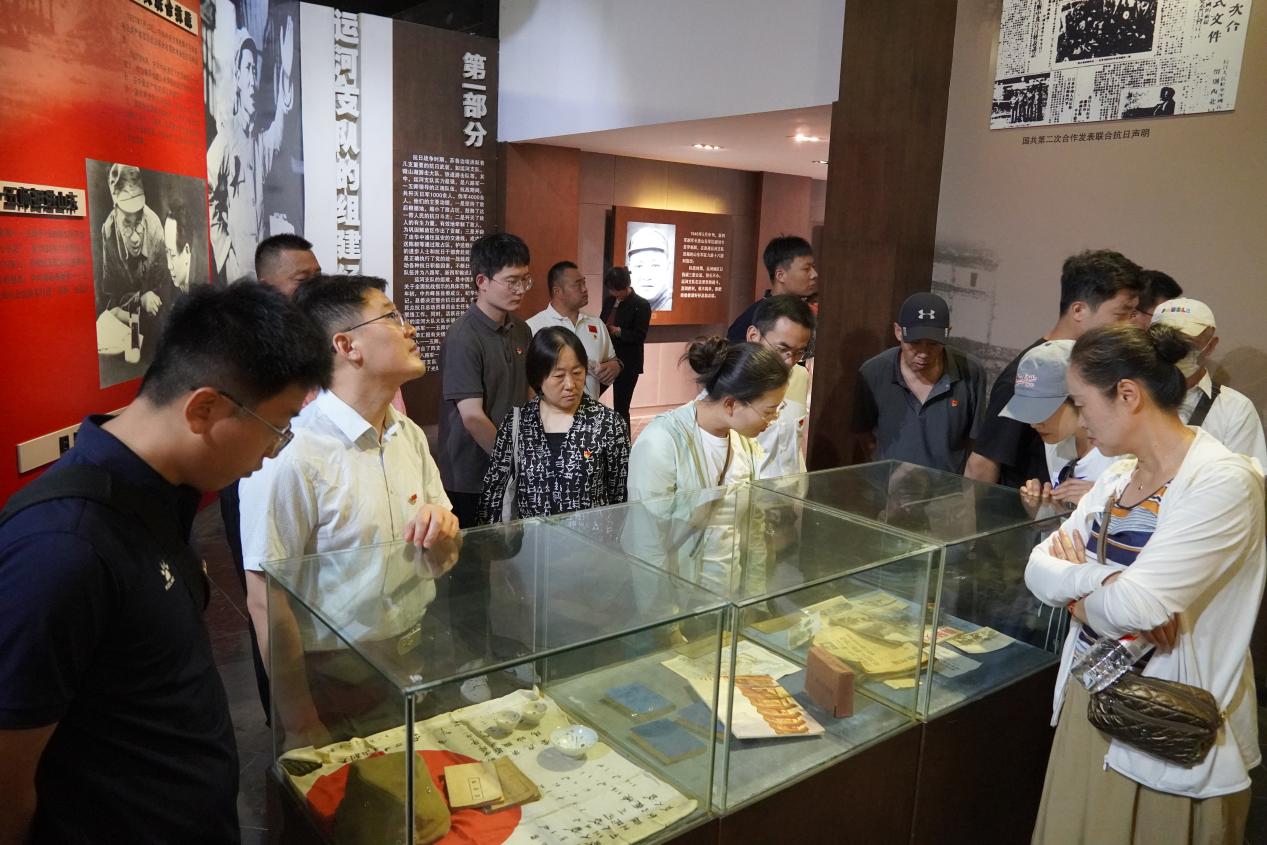 在运河支队抗日纪念馆庄严肃穆的展厅内,大家认真参观了珍贵的历史图片、文献资料和革命文物,聆听了讲解员对运河支队英勇抗战事迹的详细介绍。一幅幅生动的画面、一件件承载历史的实物,将党员们带回了那段烽火连天的岁月,深刻感受到了革命先辈们浴血奋战、舍生忘死的崇高革命精神。